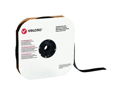 Attach and reattach items easily with this 75-foot roll of Velcro 1-inch black loop tape.