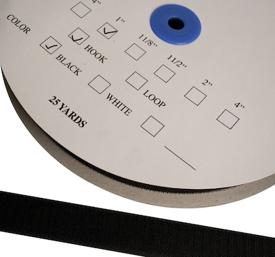Velcro Self-Adhesive Hook, 1" x 36", Black (24-7012BLK)
