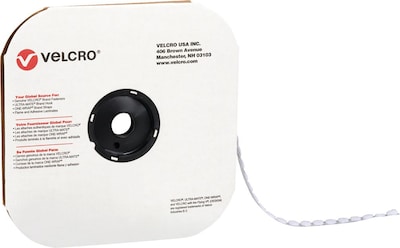 1/2" white loop VELCRO® tape individual dots helps to attach and reattach products quickly and easily.