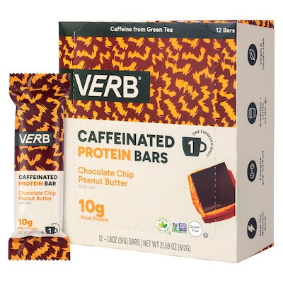 VERB Caffeinated Gluten Free Chocolate Chip Peanut Butter Protein Bar, 1.8 oz., 12/Pack (220-02522)