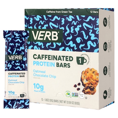 VERB Caffeinated Gluten Free Oatmeal Chocolate Chip Protein Bar, 1.8 oz., 12/Pack (220-02523)
