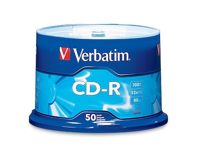 Store data confidently with this 50-pack of Verbatim 700MB 52x CD-R discs.