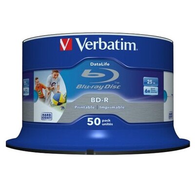 Verbatim® 98485 25GB BD-R Hub Printable Recordable Media, Spindle, 50/Pack