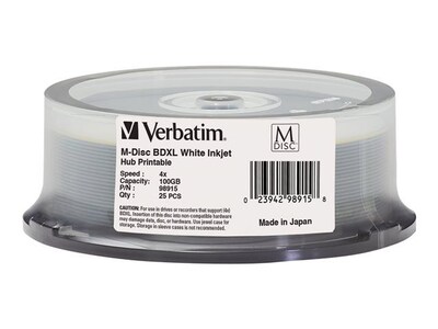 Verbatim M-Disc 98915 4x Blu-Ray, White, Inkjet Printable, 25/Pack