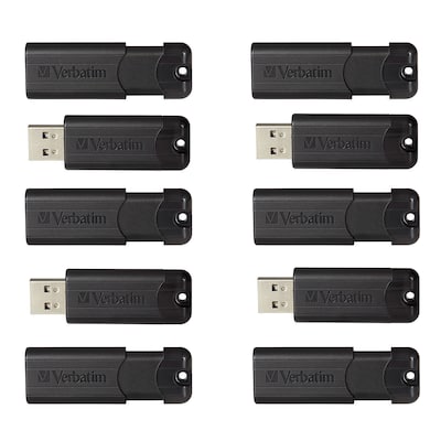 Verbatim PinStripe 32GB USB 3.2 Type-A Flash Drives, Black, 10/Pack (70902)