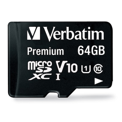 Verbatim Premium 64GB microSDXC Memory Card with Adapter, Class 10, UHS-I, V10 (44084)