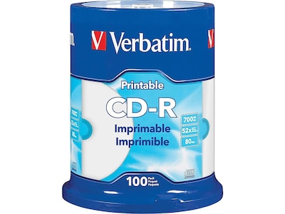 Create quality labels with this 100-pack spindle of Verbatim inkjet-printable CD-R discs.