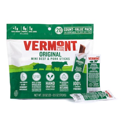 Vermont Smoke & Cure Original Mini Meat Sticks, 0.5 oz, 20/Pack (220-02353)