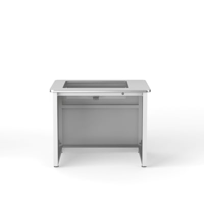 The innovative design of the Downview Computer Desk protects computer equipment, maximizes writing space, provides an unobstructed view, and remains ergonomic and comfortable. Did you ever think you could expect so much from a desk" Constructed of high-quality steel, the Downview Computer Desk supports a laminated wood surface inlaid with an anti-glare, tempered glass panel. Flat screen computer monitors of up to 24" can be mounted below the glass surface, allowing users to see them clearly and easily, but also maximizing space on the desktop. An Enclosed CPU Holder, modesty panel, and cable management system hides cables and wires out of view and prevents trip hazards. This fixed-height table is adjustable from 29" to 31" upon assembly and comes in both single user and dual user sizes, all available in eight attractive color combinations.