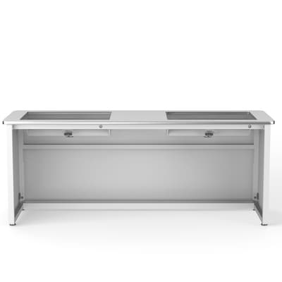 The innovative design of the Downview Computer Desk protects computer equipment, maximizes writing space, provides an unobstructed view, and remains ergonomic and comfortable. Did you ever think you could expect so much from a desk" Constructed of high-quality steel, the Downview Computer Desk supports a laminated wood surface inlaid with an anti-glare, tempered glass panel. Flat screen computer monitors of up to 24" can be mounted below the glass surface, allowing users to see them clearly and easily, but also maximizing space on the desktop. An Enclosed CPU Holder, modesty panel, and cable management system hides cables and wires out of view and prevents trip hazards. This fixed-height table is adjustable from 29" to 31" upon assembly and comes in both single user and dual user sizes, all available in eight attractive color combinations.