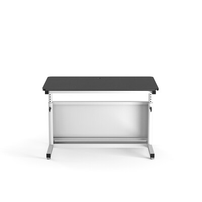 Deluxe Adjustable Height Classroom Table: Our Deluxe Adjustable Height Classroom table is heavy duty with an adjustable leg design. The adjustment is a manual spring-loaded pop-pin action that can be twisted and tightened into place to avoid tampering or unauthorized adjustment . The vertical steel tube leg has 14 pre-drilled holes for height selection. The table will adjust to a low seated 24” position up to a full standing 36” position (wheel kits may increase height); this will accommodate K-12 & college level students. The adjustment system is meant for long term height configurations. The adjustment mechanism is a two function system: consisting of spring loaded pull pin and twist tight lock positions that secure the tube in position so the table cannot rock or be accidentally adjusted. This extremely sturdy table has been manufactured for the past 20 years in our Los Angeles, CA factory. These tables can be set up for technical training workstations with one or two users. The table is constructed with a steel frame that is designed with preconfigured holes and mounts that will enable this table to transform into over 30 different configurations or combinations. We also carry an extensive variety of monitor arms for mounting 1- 6 monitors. Many of the public and private school systems enjoy this table because it can be used as a simple activity classroom table for general studies or can be set up for your most elaborate computer lab environment. One table that does it all !! Call and speak to our Classroom Table Specialist for more details.