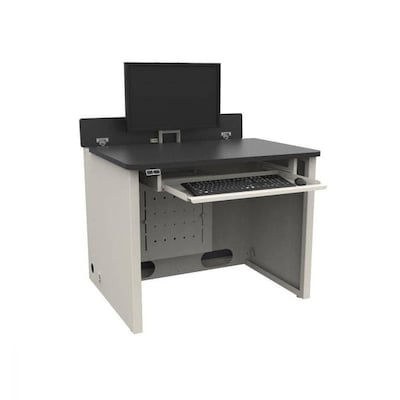 The first true "smart desk", the VersaDesk Elevation Desk maximizes space without compromising superior ergonomics or aesthetics. This classic-looking desk features a retractable, electronic-lift flat panel monitor system. Equipped with a quiet, low-voltage Intelligent Motion Technology, users can lift or lower the monitors as needed, increasing work space and protecting monitors when not in use. Ideal for classrooms and training facilities, the Elevation Desk reduces clutter and creates a clear line of sight. Available in 36" for the single user or 72" for dual users, the Elevation Desk comes in eight attractive color combinations and supports up to 24" flat panel monitors. This desk includes everything you need with the addition of retractable keyboard drawers and CPU holders.