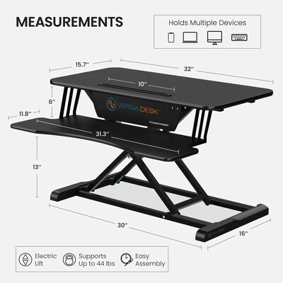 VersaDesk Power Riser 32"W Electric Adjustable Standing Desk Converter, Black (VDPR3124-BB)
