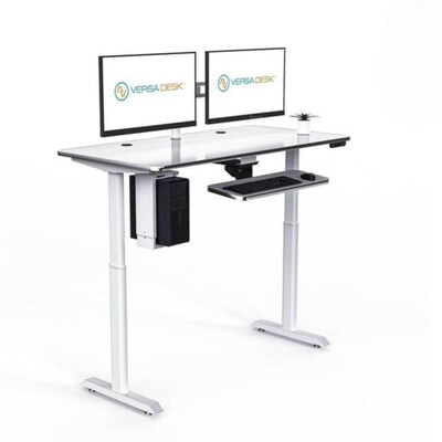 VersaDesk PowerLift 48"W Electric Rectangular Adjustable Standing Desk, White (PLSDR4824-WW-APP)