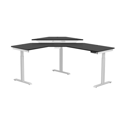 VersaDesk PowerLift 60"W Electric Corner Adjustable Standing Desk, Black/White (PLCSD6072-WB-APP)