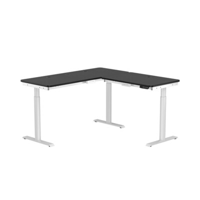 VersaDesk PowerLift 60"W Electric L-Shaped Adjustable Standing Desk, Black/White (PLLSD6060-WB-APP)