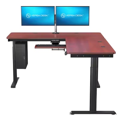 VersaDesk PowerLift 60"W Electric L-Shaped Adjustable Standing Desk, Cherry/Black (PLLSD6072-BC-APP)