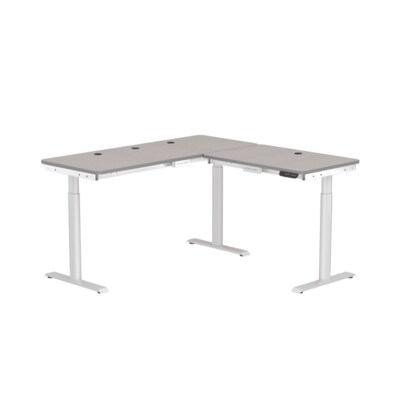 VersaDesk PowerLift 60"W Electric L-Shaped Adjustable Standing Desk, Gray/White (PLLSD6060-WG-APP)