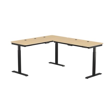 VersaDesk PowerLift 60"W Electric L-Shaped Adjustable Standing Desk, Maple/Black (PLLSD6072-BM-APP)
