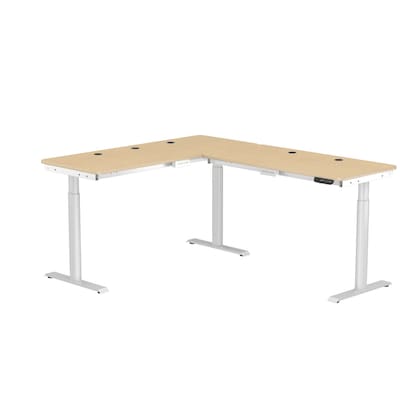 VersaDesk PowerLift 60"W Electric L-Shaped Adjustable Standing Desk, Maple/White (PLLSD6072-WM-APP)