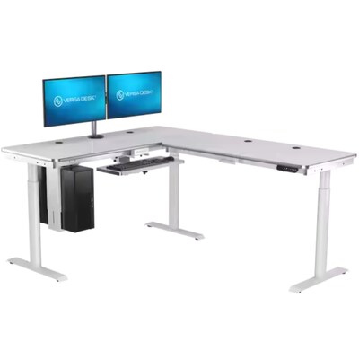 VersaDesk PowerLift 60"W Electric L-Shaped Adjustable Standing Desk, White (PLLSD6060-WW-APP)