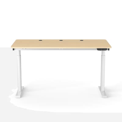 VersaDesk PowerLift 60"W Electric Rectangular Adjustable Standing Desk, Maple/White (PLSDR6030-WM-APP )