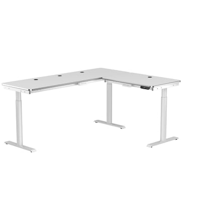 VersaDesk PowerLift 72"W Electric L-Shaped Adjustable Standing Desk, White (PLLSD7260-WW-APP)