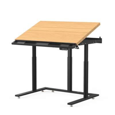 The Triad Electric Drafting Table is the ultimate innovation in ergonomic workstation design. As the first in the market, this upgraded sit-to-stand drafting table features all-electric height and tilt adjustments, allowing seamless transitions from 28.5'' to 45.5'' in height and up to a 30° tilt for technical and artistic drafting. This advanced drafting table is equipped with a premium natural bamboo surface, offering strength, durability, and comfort for writing, designing, or creating. Its modular steel frame includes pre-drilled mounting points for optional add-ons like sliding monitor arms, CPU stations, keyboard trays, and mounts that support up to 3 monitors, making it ideal for digital and analog workflows. Renowned for its heavy-duty construction, whisper-quiet motion, and innovative design, the Triad Electric Drafting Table is a trusted solution for professionals, home offices, and creative environments alike. Backed by a lifetime warranty, it's a premium product built to enhance any workspace.