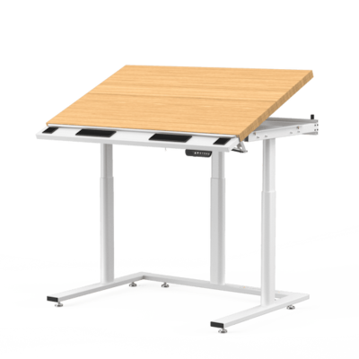 The Triad Electric Drafting Table is the ultimate innovation in ergonomic workstation design. As the first in the market, this upgraded sit-to-stand drafting table features all-electric height and tilt adjustments, allowing seamless transitions from 28.5'' to 45.5'' in height and up to a 30° tilt for technical and artistic drafting. This advanced drafting table is equipped with a premium natural bamboo surface, offering strength, durability, and comfort for writing, designing, or creating. Its modular steel frame includes pre-drilled mounting points for optional add-ons like sliding monitor arms, CPU stations, keyboard trays, and mounts that support up to 3 monitors, making it ideal for digital and analog workflows. Renowned for its heavy-duty construction, whisper-quiet motion, and innovative design, the Triad Electric Drafting Table is a trusted solution for professionals, home offices, and creative environments alike. Backed by a lifetime warranty, it's a premium product built to enhance any workspace.