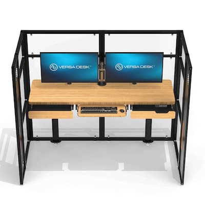 - Floating Electric Desk Surface – Bamboo Finish: Features a 1" thick bamboo wood surface with electric height adjustment at the push of a button. Designed to enhance existing cubicles or workstations.