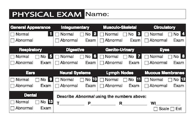 Save writing and record keeping time with this white physical exam label Check boxes for quick reference