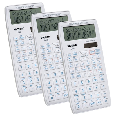 Victor VCT940-3 10-Digit Scientific Calculator with 2 Line Display, White, Pack of 3