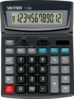 The Victor 1190 is perfect for desktop use either at home or in the office. Features a large LCD tilt display for easy viewing. Environmentally friendly, this calculator is manufactured with 40% recycled plastic. Cost/sell/margin keys make for quick and easy profit margin calculations (simply enter two variables and the third automatically appears).