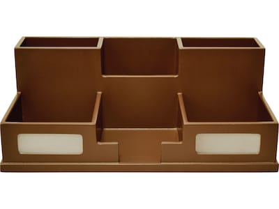 Access frequently used supplies quickly with this desk organizer. The three small compartments offer convenient storing of paperclips, rubber bands and similarly sized items, while the three larger sections provide accommodations for accessories such as scissors, pencils, and markers. This Victor Mocha Brown desk organizer comes with a smartphone holder, so you can keep your device easily visible at all times.