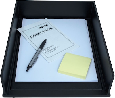 The Victor 1142-5 Front-Loading Letter Tray is the perfect desk organizer for any home or office. The stackable letter trays nest securely on top of one another up to 5 high. The Victor 1142-5 features a sturdy 2.55lbs wood construction with a durable quadruple-coated matte black finish.