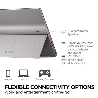 ViewSonic TD1655 15.6 Inch 1080p Portable Monitor with IPS Touchscreen, 2 Way Powered 60W USB C, Eye Care, Dual Speakers, Built-in Stand with Smart Cover