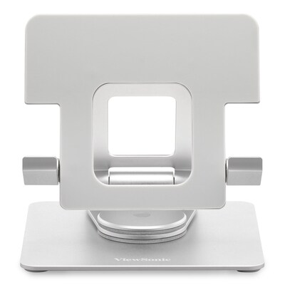 ViewSonic LCD-STND-001 Portable Monitor Stand with 360 Swivel, Tilt, and Height Adjustment for 2 Monitors up to 17 Inches Each Enhance your portable monitor viewing experience with LCD-STND-001, a lightweight and compact portable monitor stand designed for ultimate flexibility and convenience. This stand features 360° swivel, tilt, and height adjustment, allowing you to find the perfect viewing angle for your needs. Crafted with a sturdy silver aluminum frame and equipped with rubber griping, it ensures stability and holds your portable monitor securely in place. Weighing just 1 lbs, it is easy to carry and it even comes with a protective case for hassle-free transport. Compatible with all ViewSonic portable monitors, this stand is the ideal solution for on-the-go users who need a reliable and versatile monitor setup.