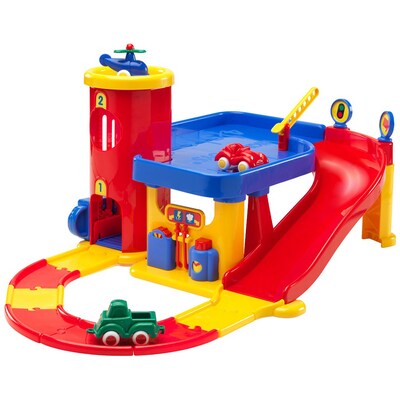 Just like mum and dad. Take the car to town and park it in the garage. Fill up with kid-powered gas. Take a tour with the helicopter. Viking city garage + road set, 2 vehicles and 1 helicopter. Measures 40cm x 65cm, packed in gift box.