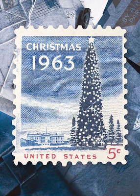 Vintage 5 Cent US Christmas 1963 Stamp Holiday Greeting Cards, With A7 Envelopes, 7" x 5", 25 Cards per Set
