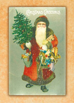 Vintage Greetings Christmas with Santa Holiday Cards, With A7 Envelopes, 7" x 5", 25 Cards per Set