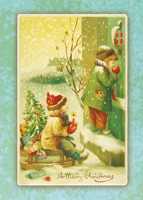 Vintage Greetings A Merry Christmas Child On Sled Holiday Cards, With A7 Envelopes, 7" x 5", 25 Cards per Set
