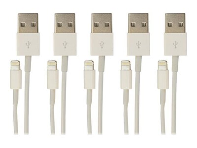 VisionTek White Lightning to USB Charge and Sync Cable for Apple iPhone/iPad/iPod; 5/Pack (900759)