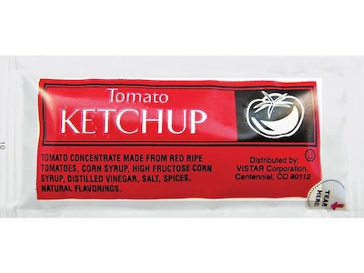 Provide staff and guests a convenient way to add extra flavor to foods with these ketchup packets. The individual servings provide convenient portion control while also eliminating the need for shared condiment bottles, and the rich tomato flavor complements a wide variety of menu items. These Vistar ketchup packets come in a 200-count box, making it easy to stay stocked.