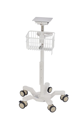 Improve the efficiency of your medical facility with our Universal Mobile Cart and our five different mounting plates, which are tailored to integrate with various patient vital signs monitoring systems. Our mobile cart features a telescoping pole with a height range from 31.49" to 51.18". This versatile cart has exceptional flexibility to meet your needs and can quickly be adapted. Additionally, it includes a sturdy wire basket and cord organizer to ensure orderliness and accessibility in busy clinical environments. Designed to withstand the rigorous demands of medical environments, our Universal Mobile Cart is built with a robust stainless-steel body. It's supported by five 2" thick wheels, two of which are equipped with 3" brakes for enhanced safety. This ensures not only smooth maneuverability but also long-term durability, making it a reliable investment for your facility. Our Universal Mobile Cart is compatible with monitors from four leading brands and has a quick and secure installation process. Whether you're using a Welch Allyn Connex Spot Monitor, Edan Monitor, RVS-100 Vital Sign Monitor, or Covidien PM10N Monitor Series, our cart provides a stable and reliable platform for your vital signs monitoring equipment.