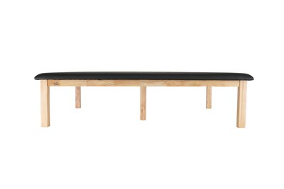 The Viva Comfort Black Upholstered Wooden Massage Therapy Treatment Table features a minimalistic design yet provides a great weight capacity and flexibility. Intended for maximum durability and use comfort for both patient and practitioner. A number of smart features will aim your work environment and address all of your medical practice needs. Upholstered material platform in natural wood tone 6-leg design. Includes center support that adds stability with solid hardwood legs and plywood frame.