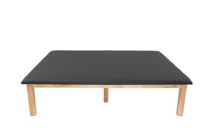 The Viva Comfort Black Upholstered Wooden Massage Therapy Treatment Table features a minimalistic design yet provides a great weight capacity and flexibility. Intended for maximum durability and use comfort for both patient and practitioner. A number of smart features will aim your work environment and address all of your medical practice needs. Upholstered material platform in natural wood tone 6-leg design. Includes center support that adds stability with solid hardwood legs and plywood frame.