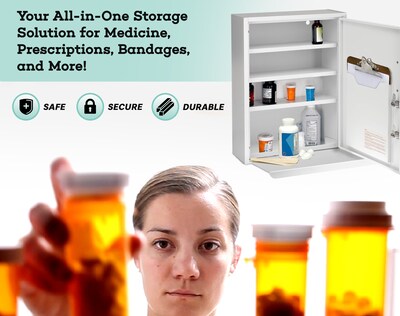 - Dual Locking System – Medicine cabinet features two unique locks, each with two keys, ensuring secure storage of medical supplies and preventing unauthorized access