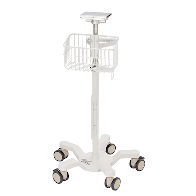 Improve the efficiency of your medical facility with our Universal Mobile Cart and our five different mounting plates, which are tailored to integrate with various patient vital signs monitoring systems. Our mobile cart features a telescoping pole with a height range from 31.49" to 51.18". This versatile cart has exceptional flexibility to meet your needs and can quickly be adapted. Additionally, it includes a sturdy wire basket and cord organizer to ensure orderliness and accessibility in busy clinical environments. Designed to withstand the rigorous demands of medical environments, our Universal Mobile Cart is built with a robust stainless-steel body. It's supported by five 2" thick wheels, two of which are equipped with 3" brakes for enhanced safety. This ensures not only smooth maneuverability but also long-term durability, making it a reliable investment for your facility. Our Universal Mobile Cart is compatible with monitors from four leading brands and has a quick and secure installation process. Whether you're using a Welch Allyn Connex Spot Monitor, Edan Monitor, RVS-100 Vital Sign Monitor, or Covidien PM10N Monitor Series, our cart provides a stable and reliable platform for your vital signs monitoring equipment.