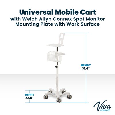 Viva Comfort Welch Allyn Connex Spot Monitor Adjustable Mobile Stand with Work Surface, White (ADI912-C-MP-02-MK)