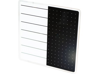 The Viztex premium magnetic glass dry-erase board combines style and functionality with high performance. The stylish printed design includes a list/index area and multi-use grid section. The grid area is designed to help with drawing planning tables and charts while also working as a guide for neat and even writing of notes and lists. The magnetic backing allows for the attaching of additional documents and notices. It is great for use in the home or office.